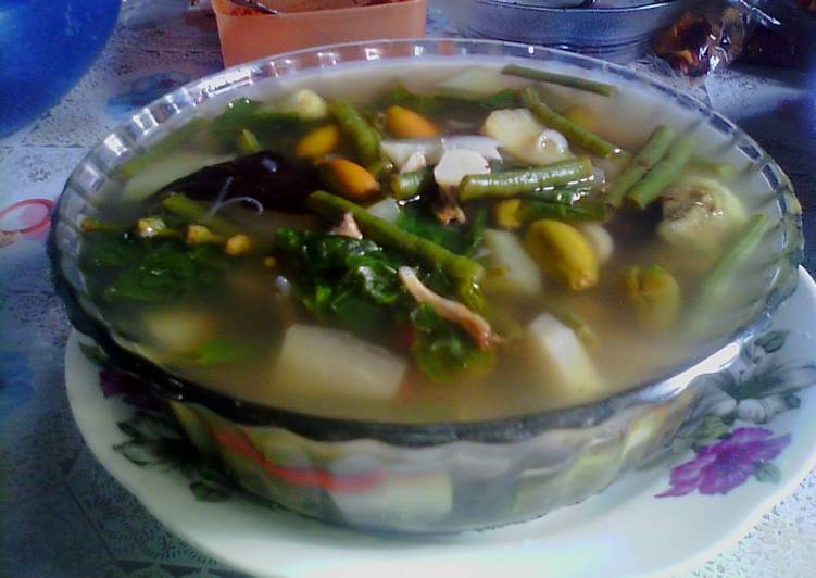 Often referred to as tamarind soup, it is one of the favorite vegetable dishes in Indonesia. Ada banyak variasi lokal sayur asam seperti sayur asam Jakarta (variasi dari orang Betawi di Jakarta), sayur asam kangkung (variasi yang menggunakan kangkung), dan sayur asam ikan asin. Sayur asem adalah campuran sayuran labu siam, buncis bisa ganti kacang panjang, jagung Sayur Asem juga populer di Sunda Bandung, Jawa Barat namanya resep sayur asem Sunda, Jakarta Betawi disebut resep sayur asem Jakarta, Jawa.