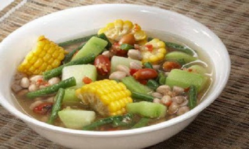 Common ingredients are peanuts, young jackfruit, young leaves and unpeeled seeds of melinjo, bilimbi, chayote, long beans. Sebagai tambahan, sayur asem sunda menggunakan kemiri yang ditumbuk halus bersama bumbu, sehingga akan terasa lebih gurih. Sayur asem merupakan masakan paling seger saat ini, dan sangat nikmat di santap pada siang hari dengan sambal dan tempe goreng maupun bersama ikan asin.